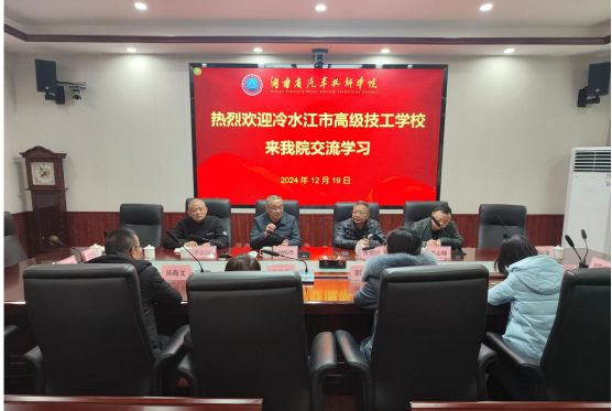 12月19日上午,冷水江市高級技工學校副校長郭環(huán)芳、黨政辦主任李榮華、教務科科長鄒勤、教務科副科長易尚文、機械系主任劉振東及汽修專業(yè)教師一行八人來我院訪問交流。交流會由我院黨委副書記劉煬燁主持,副院長曹愛國及相關部門負責人參會。