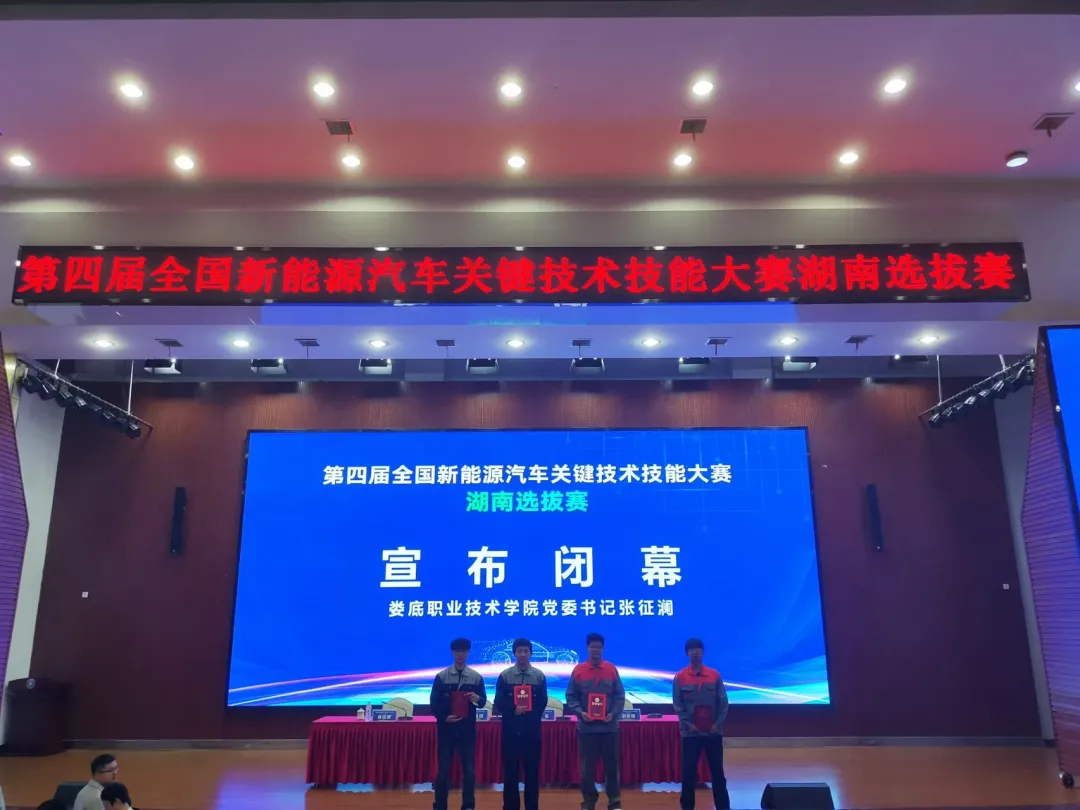 10月 在第四屆新能源汽車關(guān)鍵技術(shù)比賽湖南選拔賽中,唐銘洋,廖楨彬獲汽車維修檢驗工學(xué)生組二等獎;羅昌權(quán)、陳嘉寧獲汽車零部件裝調(diào)工學(xué)生組三等獎。