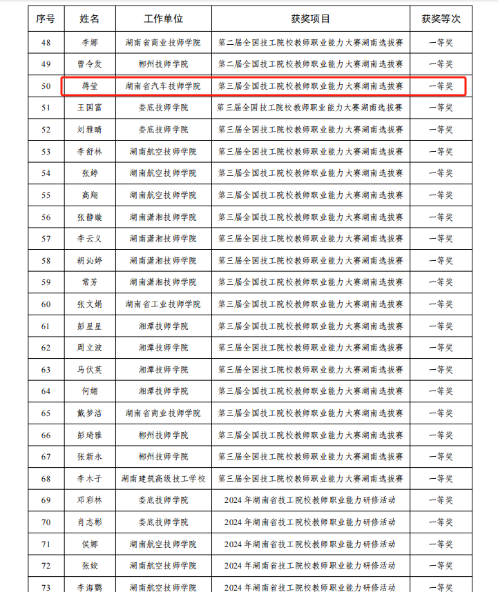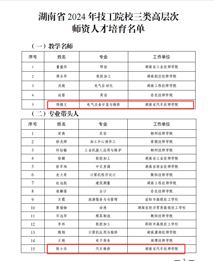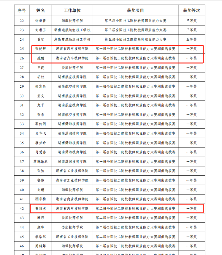 近日,湖南省人力資源和社會(huì)保障廳公布了2024年度省級(jí)三類高層次人才認(rèn)定結(jié)果。經(jīng)個(gè)人申報(bào)、院校推薦、市州初審及專家評(píng)審等嚴(yán)格程序,湖南省汽車技師學(xué)院8位教師憑借扎實(shí)的專業(yè)素養(yǎng)和突出的教學(xué)業(yè)績(jī)脫穎而出,成功獲評(píng)省級(jí)高層次人才,占本次全省認(rèn)定總數(shù)的16%,彰顯了我校師資隊(duì)伍建設(shè)的顯著成效。