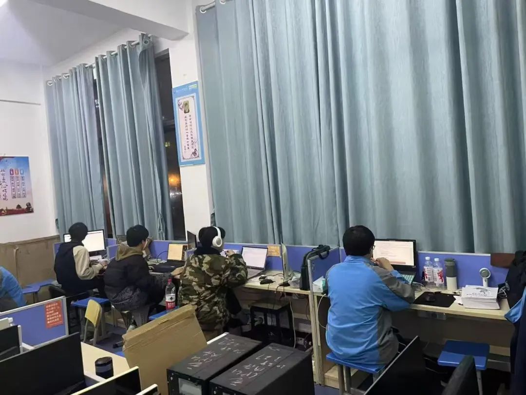 自去年楚怡杯比賽結(jié)束后,大數(shù)據(jù)競賽小組在主教練曾馬建老師的帶領下,制定了詳細的集訓計劃,夜以繼日的刻苦訓練就為了能在今年的高職組比賽獲得佳績,尤其在比賽最后一周,新的技術文件帶來了新的任務,團隊成員團結(jié)一心,迎難而上,互相鼓勵,將實訓室的椅子當作連營,師生連續(xù)一周通宵苦干,展現(xiàn)了年輕無極限的努力拼搏精神,夜晚的實訓室,只有螢屏的光芒照亮夢想,見證著每一個“碼夢人”的拼搏與堅持。