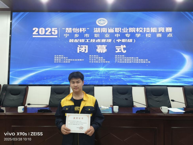 近日,2025年度“楚怡杯”湖南省職業(yè)院校技能競賽裝配鉗工技術(shù)賽項(xiàng)(中職組)在寧鄉(xiāng)市職業(yè)中專學(xué)校圓滿落幕。我院智能制造系模具 2301 班學(xué)生伍查達(dá)憑借扎實(shí)的專業(yè)技能和堅(jiān)韌的拼搏精神,在全省 14 個(gè)州市 46 支參賽隊(duì)伍的激烈角逐中脫穎而出,榮獲賽項(xiàng)三等獎(jiǎng),為學(xué)院再添榮譽(yù)勛章。
