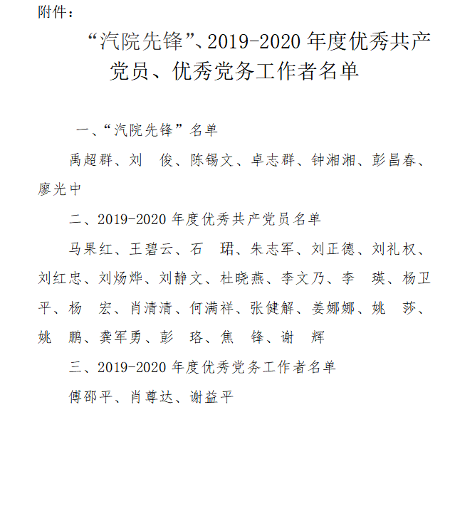 關(guān)于表彰“汽院先鋒”、 2019-2020年度優(yōu)秀共產(chǎn)黨員和優(yōu)秀黨務(wù)工作者的決定