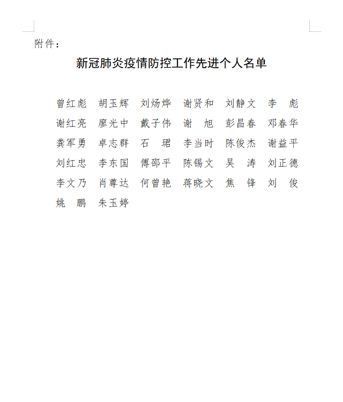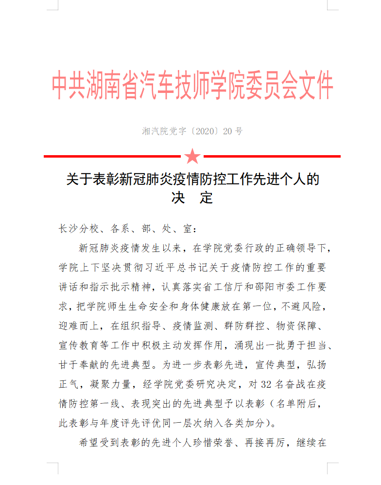 關(guān)于表彰新冠肺炎疫情防控工作先進個人的決定