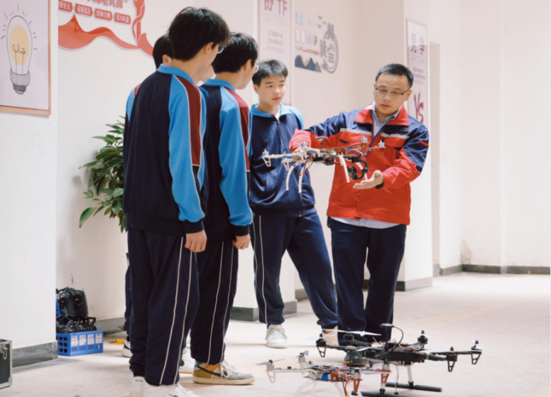 陳錫文指導(dǎo)學(xué)生使用自研無人機(jī)