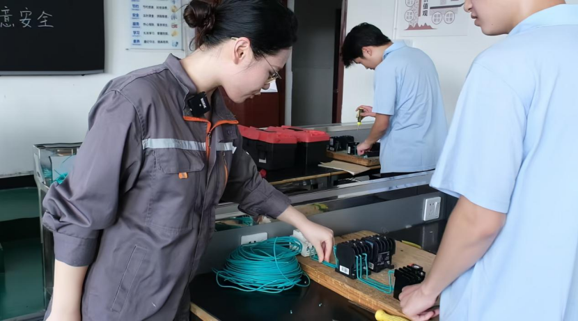 “教學(xué)不能‘紙上談兵’,必須貼著生產(chǎn)線走!”作為自動(dòng)化專業(yè)帶頭人,蔣瑩將企業(yè)真實(shí)訂單轉(zhuǎn)化為教學(xué)任務(wù),牽頭制定專業(yè)教學(xué)標(biāo)準(zhǔn)。她主導(dǎo)的“崗課賽證”融合模式,把技能競(jìng)賽項(xiàng)目嵌入課程,用職業(yè)證書考核平臺(tái)檢驗(yàn)學(xué)習(xí)成果。近五年,她指導(dǎo)學(xué)生獲“楚怡杯”機(jī)器人賽項(xiàng)省級(jí)獎(jiǎng)項(xiàng),帶領(lǐng)團(tuán)隊(duì)連續(xù)三年在邵陽(yáng)市教學(xué)能力競(jìng)賽中摘金奪銀。