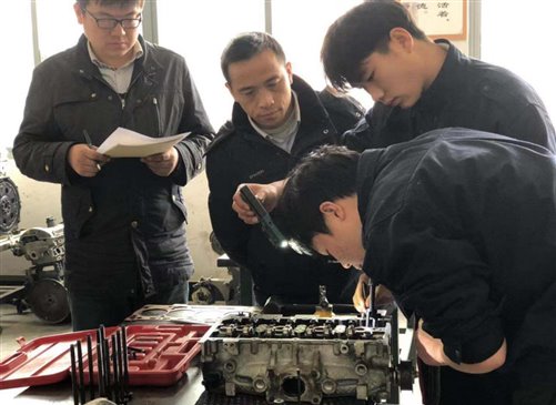 比賽采用實操考核方式,分為“發(fā)動機缸蓋的拆裝”和“發(fā)動機氣門組的拆裝”兩個項目。比賽中,各參賽選手仔細(xì)冷靜,發(fā)揮穩(wěn)定,憑借著扎實的基本功和精湛的的操作技能順利完成任,裁判組秉承公平公正的原則對參賽選手的操作進行評判。