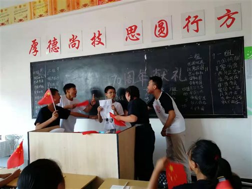 2019年9月26日下午,電氣工程系計(jì)網(wǎng)19-1班的同學(xué)在教室里舉行了一次趣味盎然的特色班級活動:“向祖國70華誕獻(xiàn)禮”愛國主義教育班級活動。14:30同學(xué)們歡聚一堂,首先由主持人介紹活動的目的和內(nèi)容,然后活動示范小組展示如何完成任務(wù),活動就此開始。