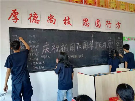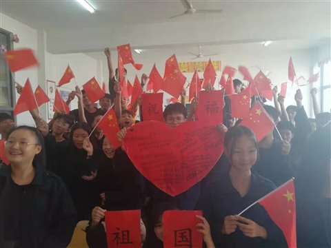 很快到了第四個環(huán)節(jié),向祖國敬獻(xiàn)祝福。同學(xué)們躍躍欲試,將自己早早準(zhǔn)備好的祝福話語,工整的寫在事先準(zhǔn)備的祝福簽名紙上。小小的紅紙片滿載著同學(xué)們對祖國的一片深情和厚愛!