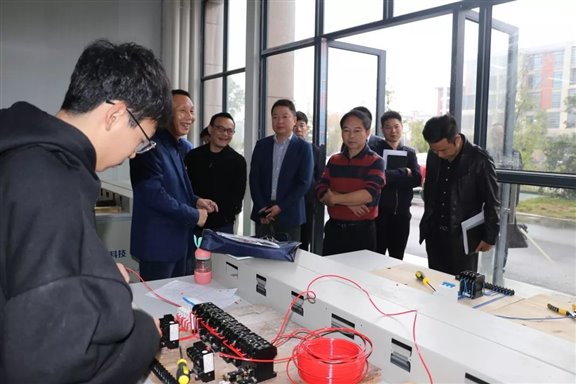 各位領(lǐng)導(dǎo)先是興致勃勃的依次參觀了我校中德汽車職業(yè)資格認(rèn)證與培訓(xùn)中心、智能制造技術(shù)中心、自動化技術(shù)中心等區(qū)域。當(dāng)看到我校先進的設(shè)備時,由衷的表示出了喜悅之情,并對學(xué)生培養(yǎng)模式和教學(xué)手段夸贊,教出的學(xué)生一定會是適用于當(dāng)代產(chǎn)業(yè)發(fā)展的人才。