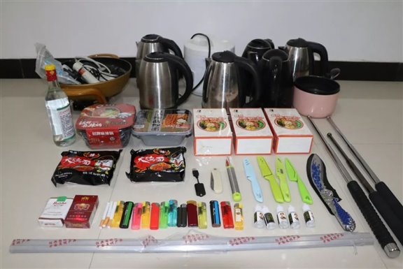 排查結(jié)果顯示,雖然未發(fā)現(xiàn)正在使用大功率電器的情況,但收繳了一批電飯煲、電磁杯、電水壺、燙發(fā)棒等大功率電器,還收繳了一些具有危險(xiǎn)性的管制刀具、打火機(jī)、香煙、酒、方便面等宿舍嚴(yán)禁物品。說(shuō)明同學(xué)們對(duì)宿舍安全認(rèn)識(shí)的意識(shí)還不夠強(qiáng),還抱有僥幸心理。