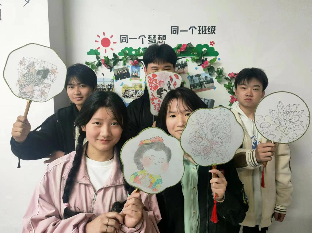 扇子剛?cè)胧郑蠹冶闫炔患按貏?dòng)手繪畫起來(lái)。一筆筆、一畫畫,空空如也的扇面開始變得繽紛多彩、妙趣橫生,有的同學(xué)畫上了自己喜愛(ài)的卡通人物,有的畫上了適合團(tuán)扇的植物,有的寫上了自己的美好愿望,一幅幅五顏六色的扇子畫在他們的精心雕琢下大功告成了。親手做出的扇子輕輕搖曳時(shí),不僅讓大家感受到?jīng)鏊屣L(fēng),更傳承著中國(guó)優(yōu)秀的傳統(tǒng)文化,讓傳統(tǒng)文化的種子在同學(xué)心中生根發(fā)芽、茁壯成長(zhǎng)。
