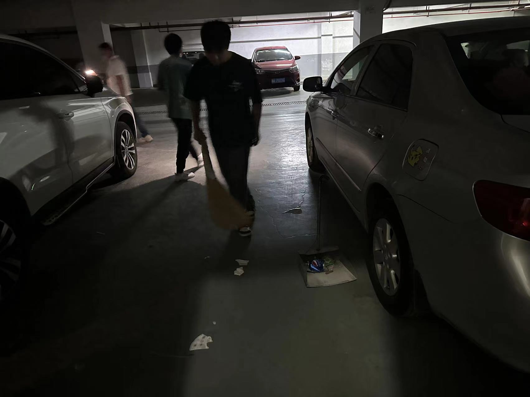 第六節(jié)課下課后,同學(xué)們攜帶各種清潔工具,包括掃把、拖把、抹布等,來(lái)到學(xué)校的地下停車場(chǎng),按照事前的分組安排迅速投入到緊張而有序的勞動(dòng)中,有的負(fù)責(zé)掃除地面上的垃圾,有的擦拭欄桿和門上的污漬和塵土。在同學(xué)們的共同努力下,原本有些臟亂的地下停車場(chǎng)逐漸變得干凈整潔起來(lái)。