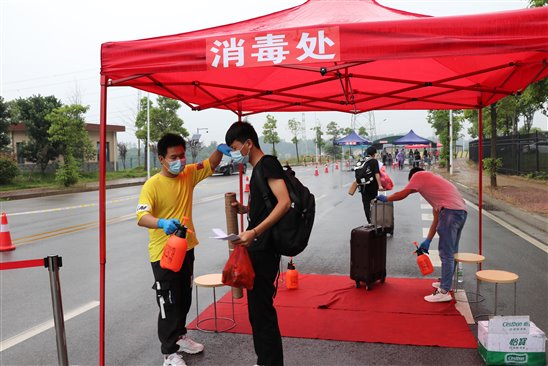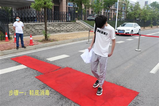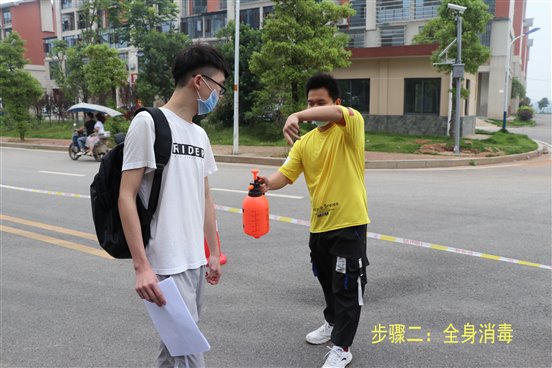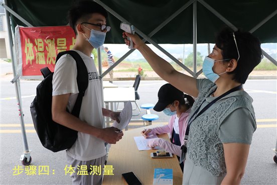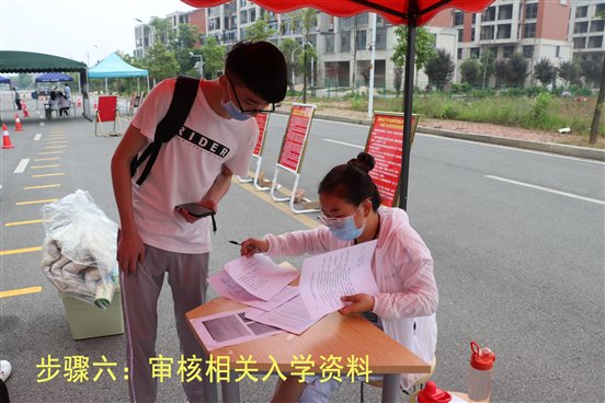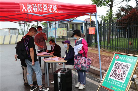一大早,分校領導及全體工作人員就全部到位,嚴陣以待,按照原來預演的流程辦理學生入校報道手續(xù),從鞋底消毒-隨身行李及全身消毒測溫-提交報到登記表-測量體溫-展示通行綠碼-遞交承諾書、健康卡,嚴防校園防疫關卡。