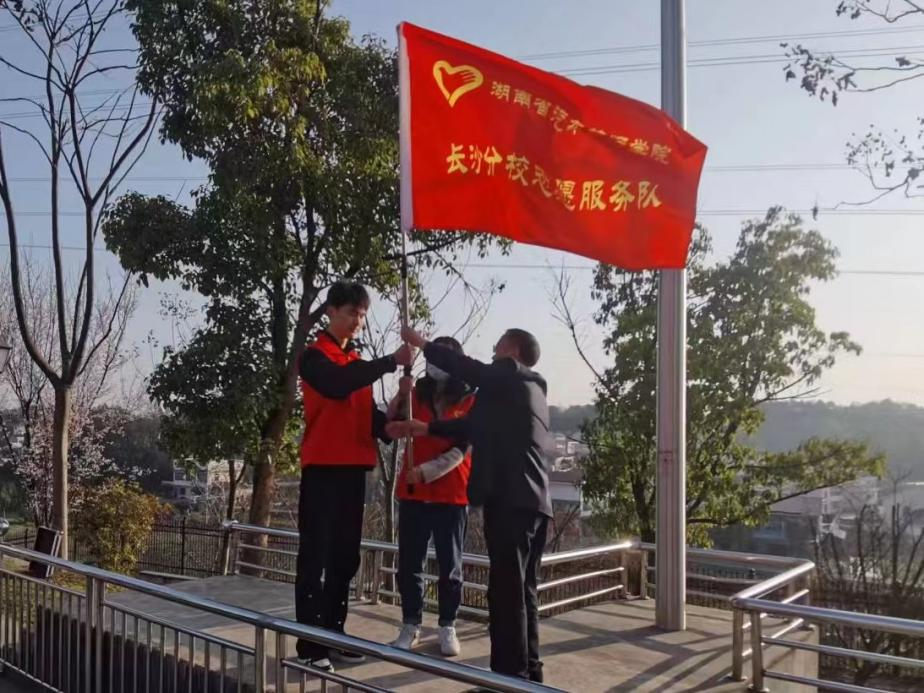 長沙分校團(tuán)總支負(fù)責(zé)人曾瑞宣讀分校青年志愿者活動(dòng)倡議書,在曾老師的呼吁下,青年志愿者們由四面八方匯至主席臺(tái)前集合。長沙分校黨總支副書記廖光中向青年志愿者代表授予“志愿服務(wù)隊(duì)”旗,青年志愿者代表劉葉老師接旗并發(fā)言,她表示青年志愿者們一定會(huì)盡己所能,不計(jì)報(bào)酬,幫助他人,服務(wù)社會(huì),踐行志愿精神,傳播先進(jìn)文化,為構(gòu)建和諧社會(huì)奉獻(xiàn)自己的力量。